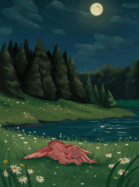 Backgrounds can consist of simple elements like sky, grass, clouds, rainbows, etc.